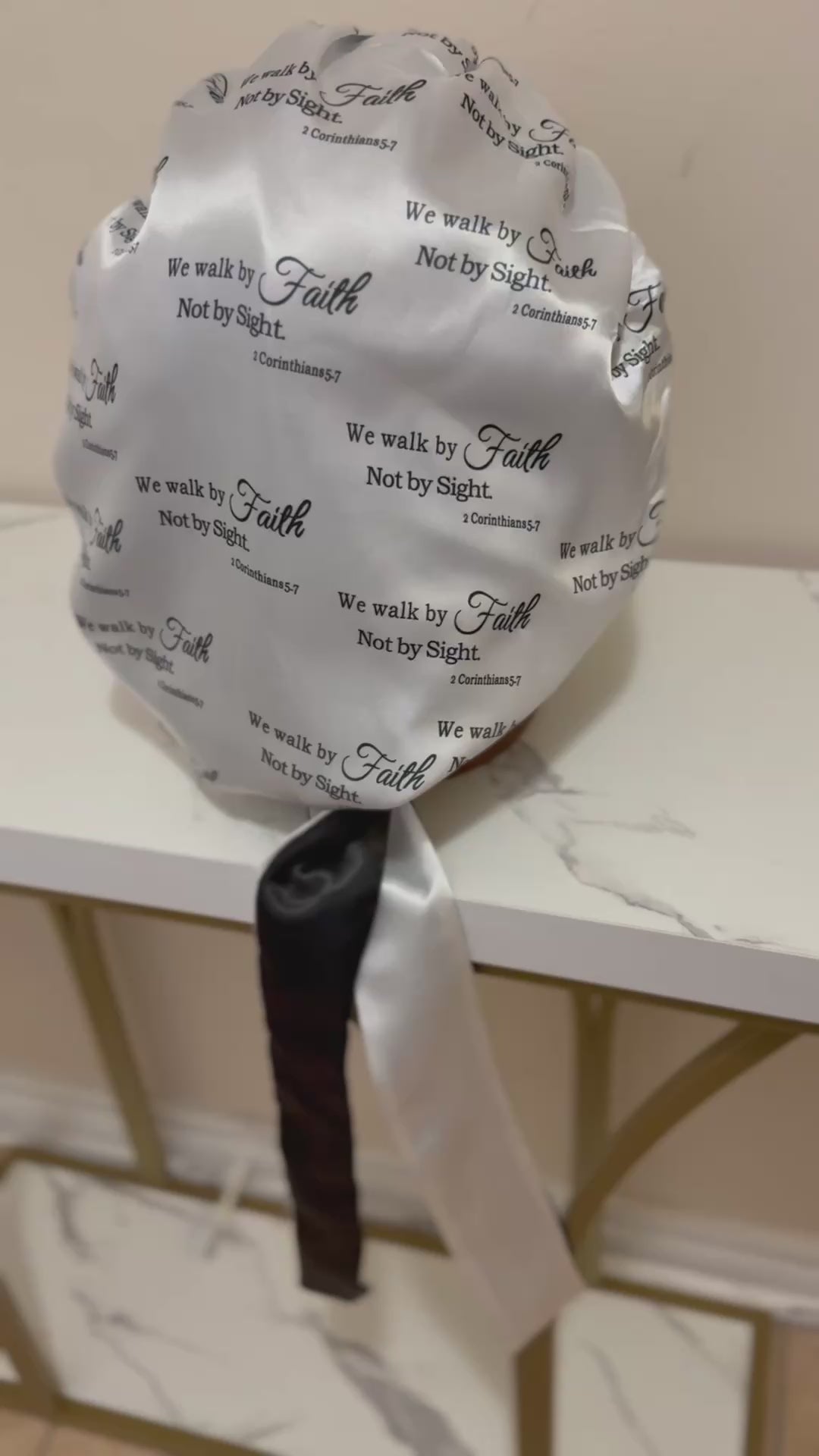 Introducing The Walk By Faith Bonnet – the reversible satin bonnet that protects your hair while honoring your faith. Two colors, one powerful reminder to trust in His plan!